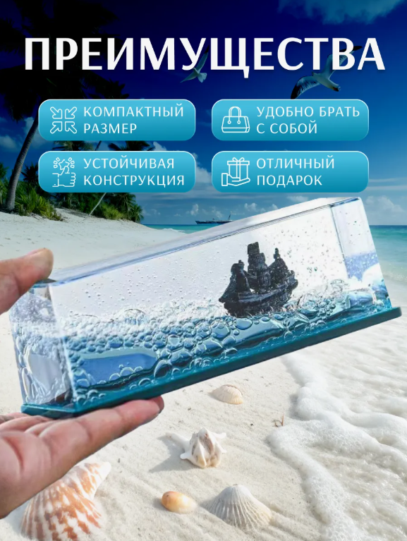 Выбирая такой сувенир, вы приобретаете не только красивый предмет, но и возможность создавать свой уникальный дизайн. Такой сувенир станет незабываемым подарком для любого человека, который ценит красоту и оригинальность. Игрушка с жидкостью внутри не оставит равнодушным ни детей , ни взрослых. Корабль на волнах привлекает внимание, создает эффект залипания, чтобы не случилось корабль всегда будет находиться на поверхности жидкости.